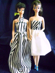 Photo3: Ponytail Barbie and Silkstone Barbie. Photo 3 illustrates the visual differences of the classic "Ponytail Barbie" and "Silkstone Barbie". Photo and custom dresses by Roselyn Gadia-Smitley.